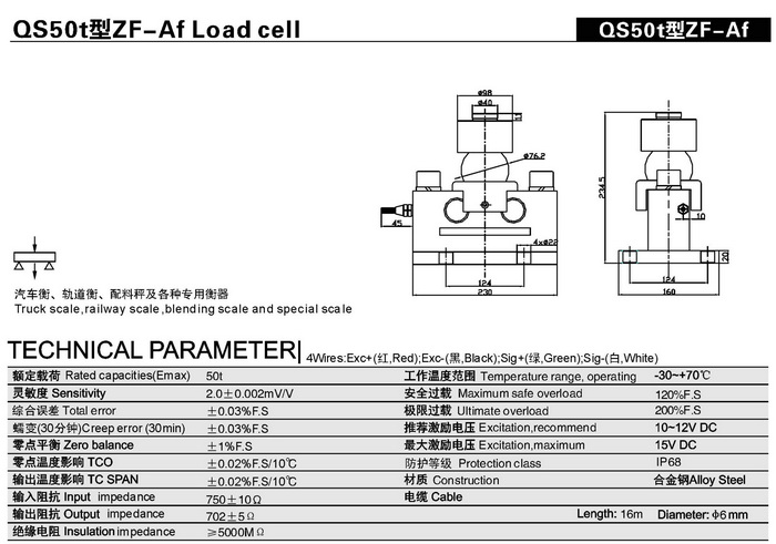產品名稱:橋式QS50t型ZF-Af稱重傳感器