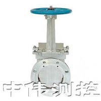 PZ73H系列手動對夾式刀型閘閥的啟閉件是閘板,閘板的運動方向與流體方向相垂直,閘閥只能作全開和全關,不能作調節和節流。