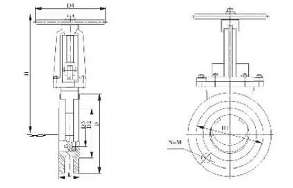 A gate is introduced: PZ43H/Y seriesManual single clip type knife gate valveThe knife type gate has a good shearing, the most suitable fluid in the slurry, powder granules, fibers and other difficult to control, widely used in papermaking, petrochemical, mining, drainage, food and other industries.Knife type valve with a variety of seat options, and can be controlled according to site requirements, equipped with electric or pneumatic actuators, valve automation. Two, the scope of application: PZ43H/Y seriesManual single clip type knife gate valveThe suitable fluid in the slurry, powder granules, fibers and other difficult to control, widely used in papermaking, petrochemical, mining, drainage, food and other industries. Three, structural characteristics: PZ43H/Y seriesManual knife single clip type valveIs the gate opening and closing parts, RAM direction of motion perpendicular to the direction of the fluid, valve can only be fully open and fully closed, can not be adjusted and the throttle. There are two gate sealing surface, the most common mode of gate valve sealing surface to form two wedge, the wedge angle varies with the valve parameters, usually 50, wedge type knife gate valve can be made into a whole, called the rigid gate; can also be made to produce micro deformation of ram, in order to improve its process of the deviation, make up the sealing surface angle in the process, the gate is called the flexible gate. Knife gate valve is closed, the sealing surface can only rely on media pressure to seal, that media pressure will depend on the sealing surface of the ram pressure to the other side of the seat to ensure the sealing surface of the seal, which is self sealing.Most of the knife gate valve is sealed by force, that the valve is closed, to rely on external pressure to force the gate to the seat to ensure the sealing surface of the seal.Four, standard specification: Design and manufacturing standards: The structure of standard length: GB/T 12221-2005 Flange standard: GB/T 9113 Pressure temperature rating: GB/T 12224-2005 Test standards: GB/T 13927-2008 Structure diagram and the main external and connecting dimensions, five single clip type manual knife gate valve (mm)