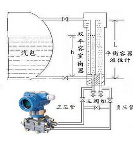 2.系統工作時(鍋爐汽有液位):在確保正負壓室充滿冷凝水的前提下,關閉平衡閥,打開正負相閥,同時關閉雙室平衡容器的汽液相閥門.